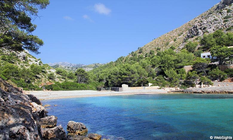 Cala Murta liegt auf der Halbinsel Formentor im Norden Mallorcas und der beliebte Aussichtspunkt Cap de Formentor befindet sich ein paar Kilometer nordöstlich.