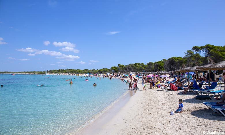 Der Strand ist mit hellem, feinem Sand bedeckt. Das Wasser ist sehr flach und hat tolle türkisfarbene Schattierungen. Er ist etwas besser vor Wellen geschützt als der Strand Es Trenc in der Nähe.